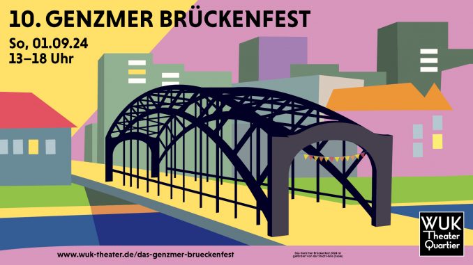 Halle. WUK. Am Sonntag, 01.09.2024, findet von 13 bis 18 Uhr das 10. Genzmer Brückenfest, ein kulturelles Straßenfest rund um die Genzmer Brücke, statt. Gemeinsam mit engagierten Menschen aus der Nachbarschaft, aus Kunst und Kultur sowie ansässigen Vereinen richtet das WUK Theater Quartier das Brückenfest auch 2023 wieder aus.
