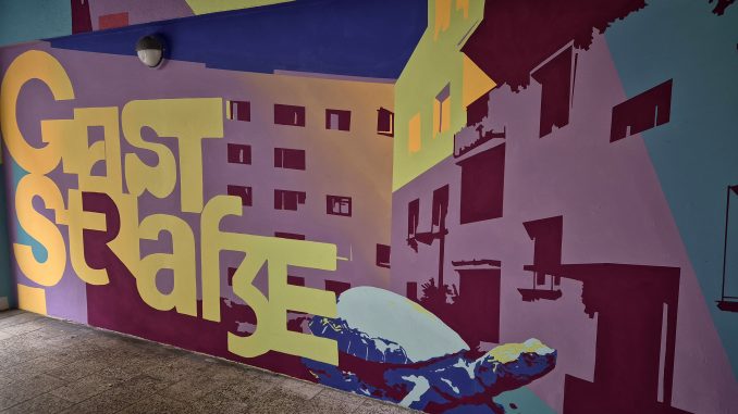 Gestaltet wurde das Kunstwerk vom Team der Freiraumgalerie. Die beiden Kunstschaffenden Hanna Müller-Kaempffer und Danilo Halle kamen während der Arbeiten mit vielen Anwohnenden sowie Passantinnen und Passanten ins Gespräch. Die Rückmeldungen fielen durchweg positiv aus. „Uns war wichtig, ein Bild zu schaffen, das die Vielfalt und Lebendigkeit des Quartiers widerspiegelt. Viele Menschen haben uns während der Umsetzung angesprochen – diese Resonanz hat uns gezeigt, dass Kunst im Alltag wirklich bewegt“, sagt Hanna Müller-Kaempffer.