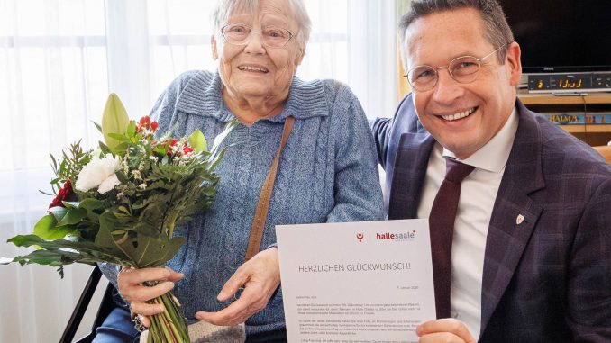 Halle/PSt. Ihren 105. Geburtstag konnte Magdalene J. am heutigen Mittwoch, 7. Januar 2026, begehen. Oberbürgermeister Dr. Alexander Vogt gratulierte der Jubilarin persönlich, die nun auch den aktuellen Altersrekord in Halle (Saale) hält. Magalene J. wurde 1921 in Meißen geboren und wohnt heute im Cura Seniorenzentrum in der Silberhöhe. Es gratulierten eine Tochter, zwei Enkel und vier Urenkel.