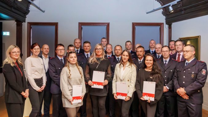 Oberbürgermeister Dr. Alexander Vogt überreichte im festlichen Rahmen die Urkunden. Befördert werden vier Beamte des allgemeinen Verwaltungsdienstes sowie 14 des feuerwehrtechnischen Dienstes der Stadt Halle (Saale).