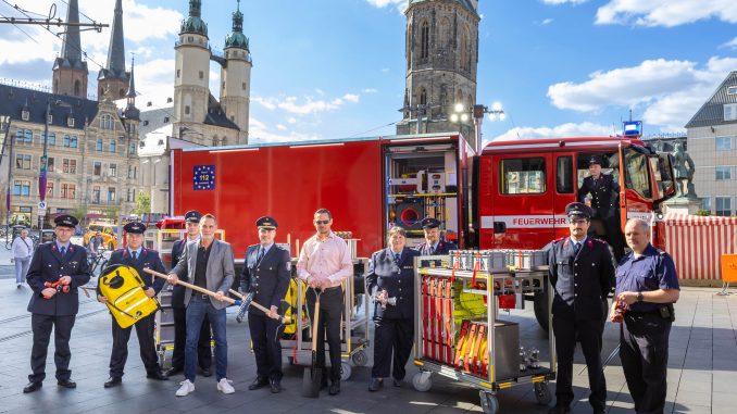 Halle. PSt. Die Stadt Halle (Saale) hat am heutigen Donnerstag, 21. August 2025, einen neuen „Gerätewagen Logistik“ für die Feuerwehr vor dem Stadthaus offiziell in Dienst gestellt.