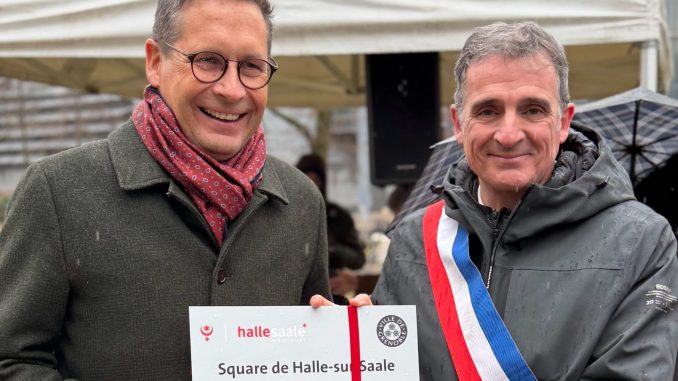 Halle/PSt. Aus Anlass des 50. Jubiläums die Städtepartnerschaft zwischen Halle (Saale) und Grenoble ist eine Delegation aus Halle (Saale) um Oberbürgermeister Dr. Alexander Vogt in die französische Partnerstadt gereist. Höhepunkt des Städtepartnerschafts-Jubiläums war am „Tag der Deutsch-Französischen Freundschaft“, die offizielle Namensvergabe „Square de Halle-sur-Saale“ für einen Platz in Grenoble. Bei der Übergabe eines Schildes aus Halle (Saale), das als Geschenk an das 50. Jubiläum erinnert, und beim anschließenden „Konzert im Museum“ haben Oberbürgermeister Dr. Alexander Vogt und Bürgermeister Éric Piolle, die Städtepartnerschaft von Halle (Saale) und Grenoble gewürdigt. Am Nachmittag folgten ein Arbeitsgespräch sowie ein Treffen mit der „EFA38-Amitié Grenoble-Halle“, dem Freundeskreis in Grenoble.