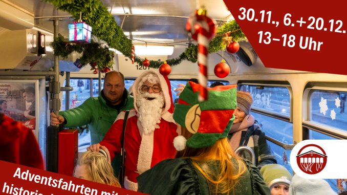 Halle/HStrbf. Der Verein „Hallesche Straßenbahnfreunde e. V.“ lädt auch in diesem Jahr wieder zu einer ganz besonderen Veranstaltung ein: Die singende, klingende Adventsbahn rollt durch Halle (Saale). An drei Tagen besteht die Gelegenheit, an dieser beliebten Fahrt teilzunehmen: Am 30. November, 06. Dezember und 20. Dezember 2025, jeweils zwischen 13 und 18 Uhr – wird ein liebevoll geschmückter historischer Straßenbahnwagen im Stadtgebiet unterwegs sein.