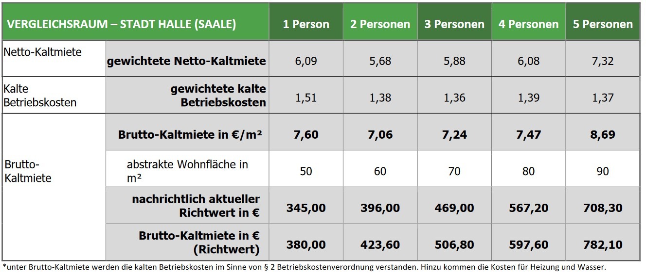 Ab dem 01.02.2024 sollen in Halle neue Richtwerte für die angemessenen Kosten der Unterkunft (KdU) für Leistungsbeziehende in der Grundsicherung für Arbeitssuchende (SGB II) und der Sozialhilfe (SGB XII) gelten. Die KdU-Sätze sollen zwischen 35 Euro und 74 Euro und damit im Maximum um 10 Prozent erhöht werden.