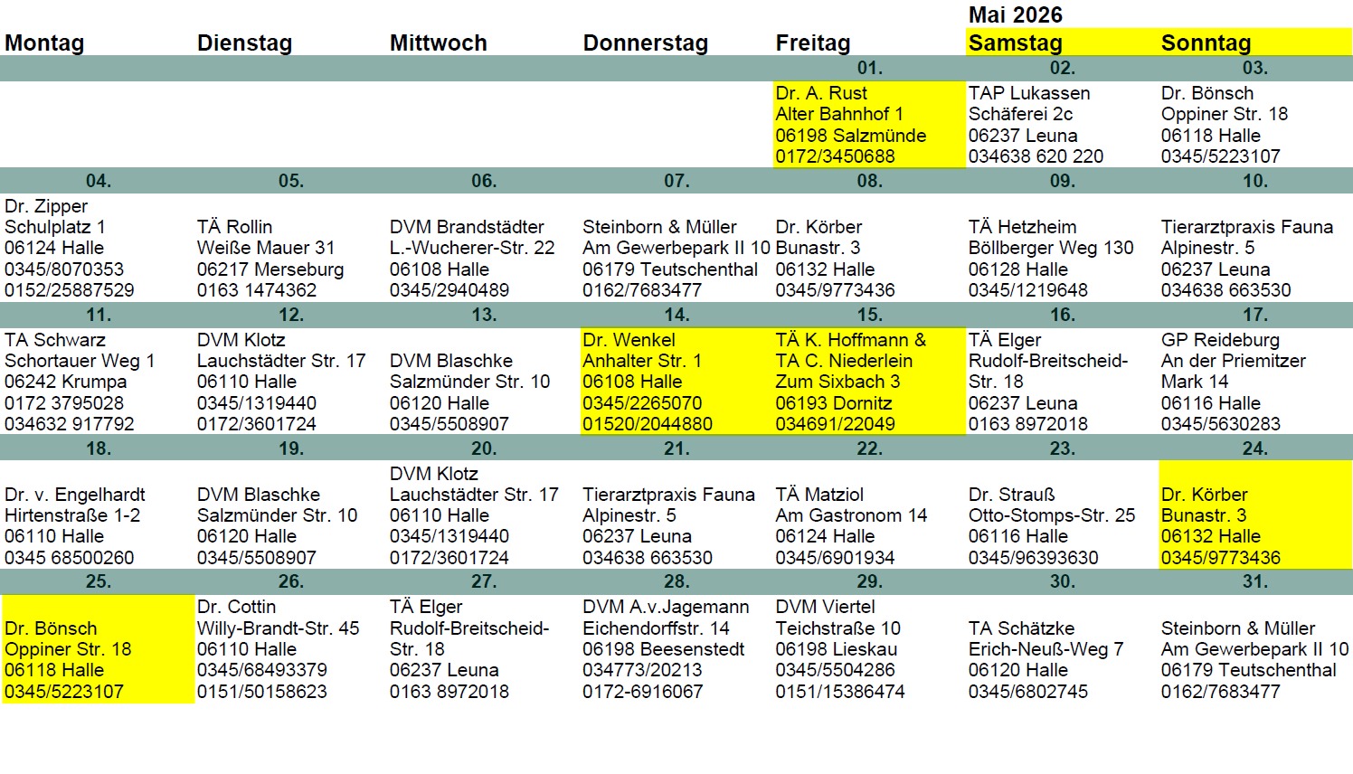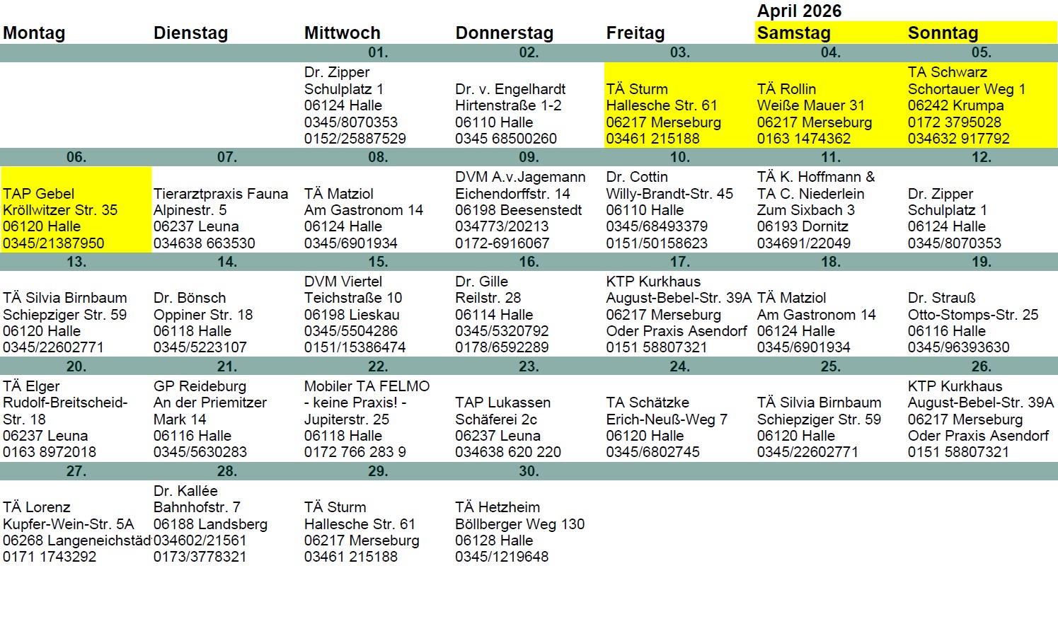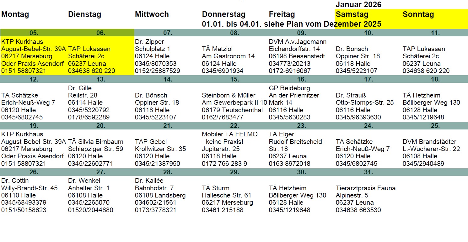 Herausgabe der Pläne durch Tierarztpraxis Gebel, Halle (Saale).